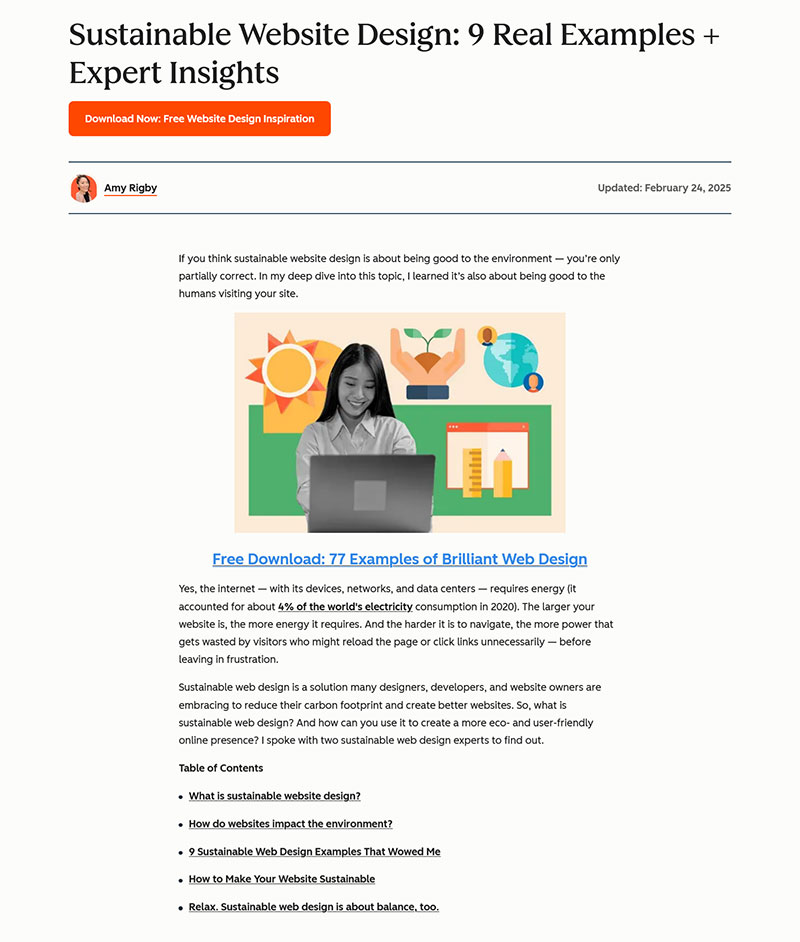 I’m so excited to be featured in HubSpot’s article on Sustainable Website Design.